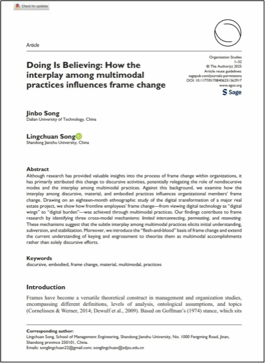 Recently, the paper titled Doing is believing: how the interplay among multimodal practices influences frame change, co-authored by SEM Professor Song Jinbo ...