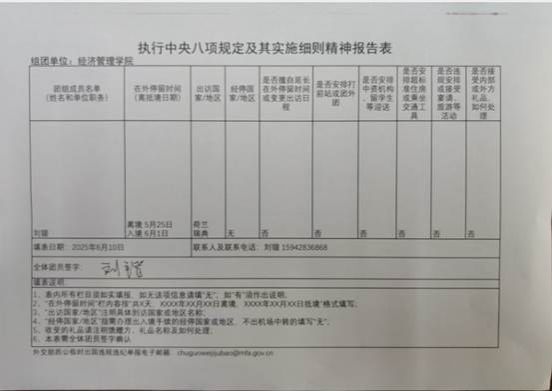 上述行程严格按照审批后的行程,执行中央八项规定及其实施细则精神报告表如下: